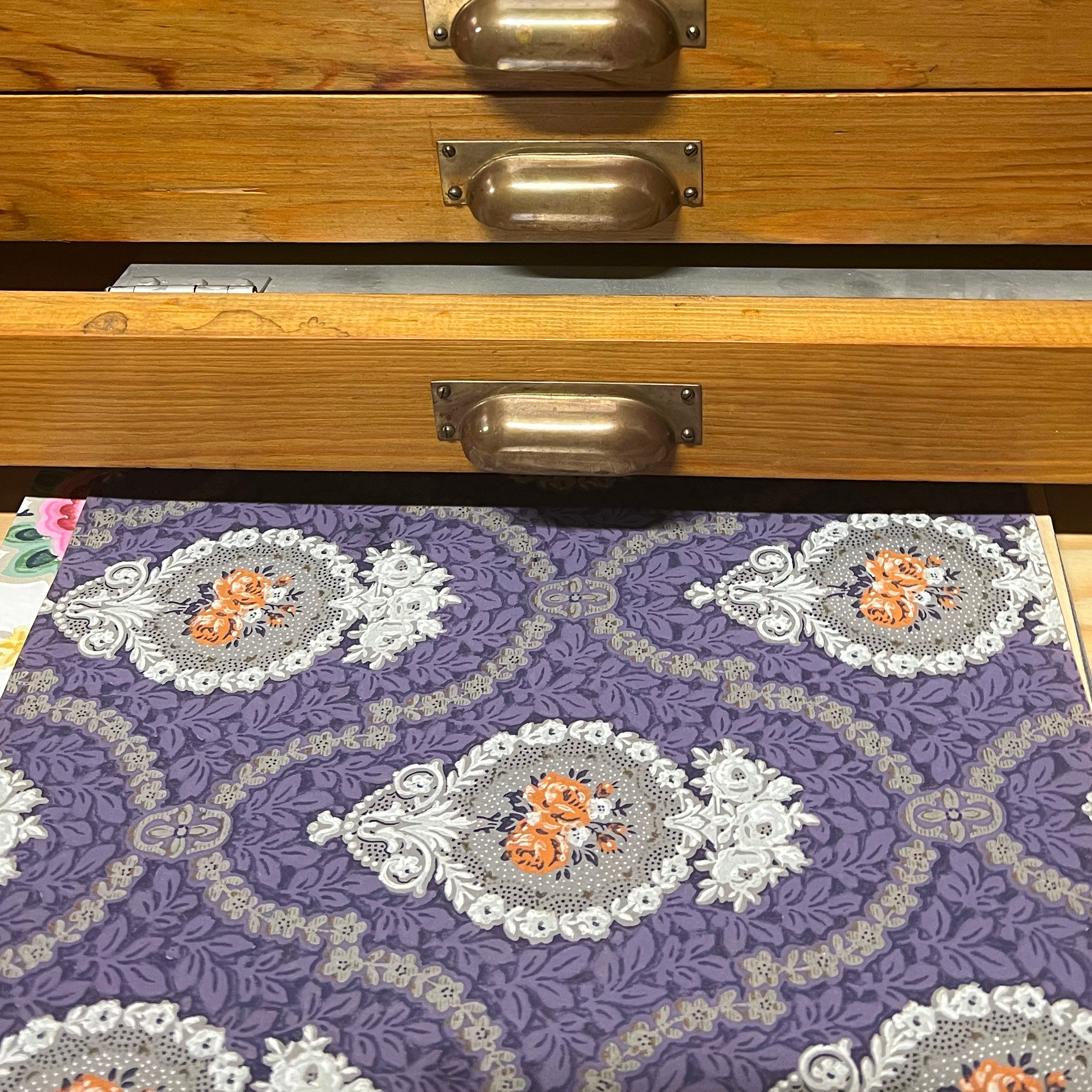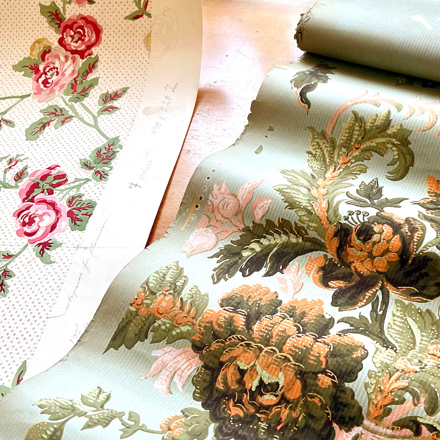 Utöver de gamla tapeter vi säljer har vi ett arkiv med tusentals mönster i form av enstaka rullar, mönsterböcker och originalskisser som sträcker sig tillbaka till slutet av 1700-talet.