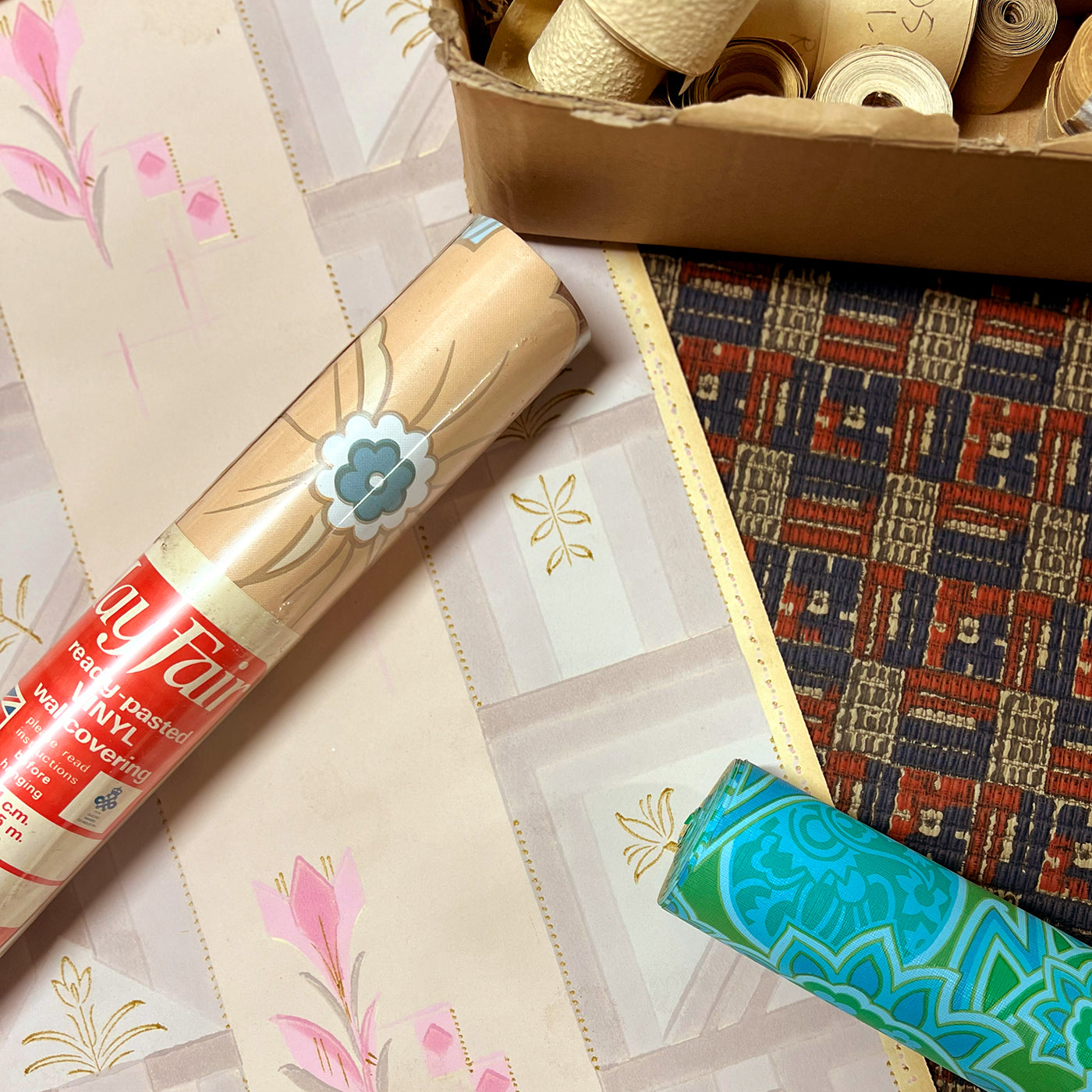 Vi har handlat med gamla tapeter i snart 25 års tid. I vårt unika lager finns nu ca 30.000 rullar med tapeter och bårder från hela 1900-talet, huvudsakligen från nu försvunna svenska tapetfabriker.