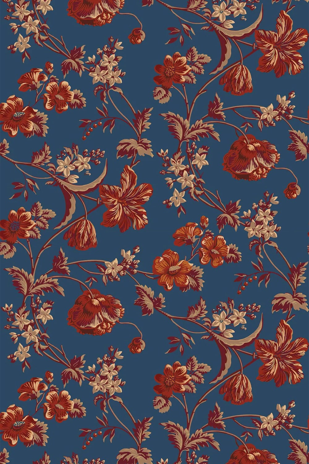 Fleurs de Murano är ett mönster av firman Basset, hämtat från tapetsamlingarna i Frankrikes Nationalbibliotek och daterat till ca 1799. Tapeten trycks på beställning på matt nonwoven i rullar som är 52 cm breda och 10 m långa.