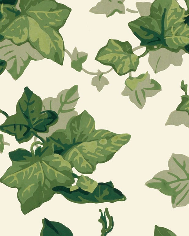 Tapeten Oxford Ivy är en reproduktion av en handtryckt tapet med murgröna. Den är svår att datera eftersom denna typ av mönster har varit populärt i omgångar. En källa anger att den skulle vara gjord av Sanderson, vilket innebär tidigast 1860-tal. Men eftersom Sanderson till en början var importör av franska tapeter så kan det också vara en fransk tapet av äldre datum. Tapeten trycks på beställning på helmatt nonwoven.