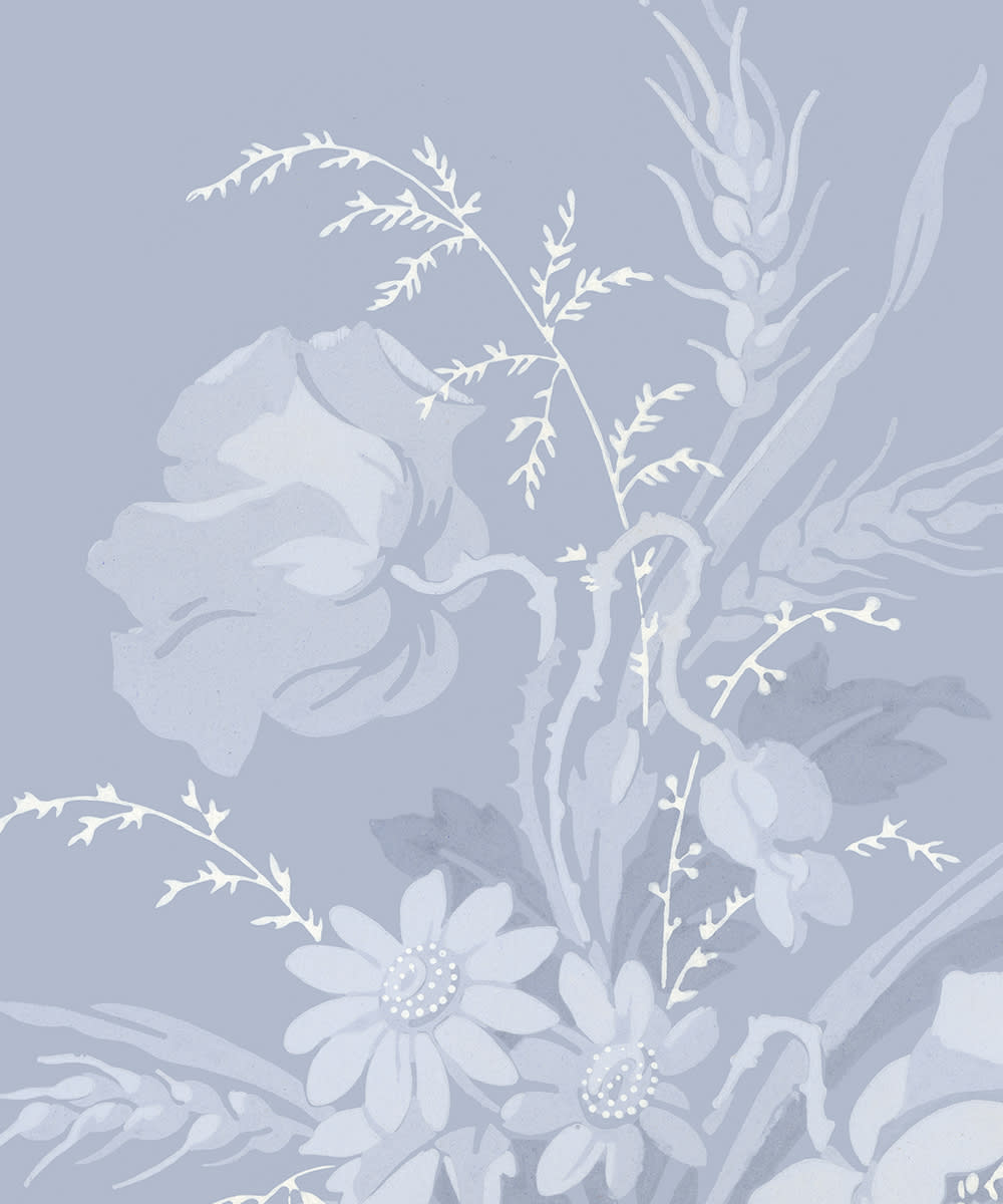 Poitiers är en reproduktion av en fransk tapet från perioden 1850-1870, hämtad från Tapetoramas arkiv. Mönsterbilden är typisk för perioden med en stor central blombukett omgiven av minde blommor. Tapeten trycks på beställning på helmatt nonwoven i rullar som är 10 meter långa och 50 cm breda.