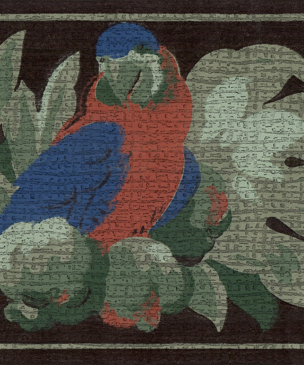 Manaus är en reproduktion av en art deco-bård från 1920-talet med färgstarka blommor och papegojor. Bården är 11,5 cm hög och trycks på helmatt nonwoven i rullar som är 10 meter långa.