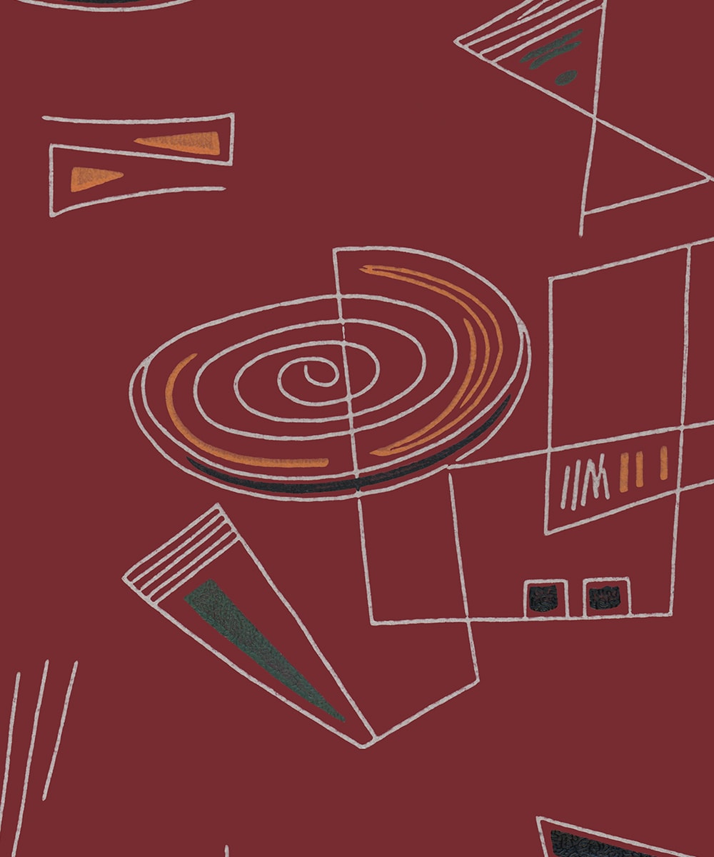 Jazz är en reproduktion av en tapet från 1950-talet av okänt ursprung, hämtad från Tapetoramas arkiv. Tapeten trycks på beställning på helmatt nonwoven i rullar som är 10 meter långa och 50 cm breda.