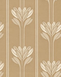 Stramt stiliserad växtlighet i vilket stjälkarna blir till tapetens bärande randmönster. Originaltapet från 1970-talet.