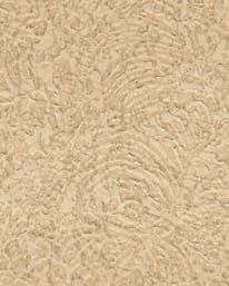Murrig och starkt guldglänsande putsimitation med café latte-färgad botten och bra tryck i kurvorna. De två huvudsakliga mönstrena jobbar självständigt vilket ger liv och oförutsägbarhet. Guldets effekt skiftar fullständigt med betraktarens vinkel.
