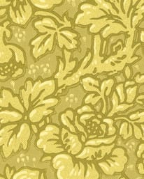 Många av 70-talets blommiga mönster hämtades från det sena 1800-talets frodiga tapetkonst – som i sin tur hade äldre förlagor – som i sin tur var inspirerade av vävar och gobelänger. Här ett organiskt slingrande bladverk med pioner.