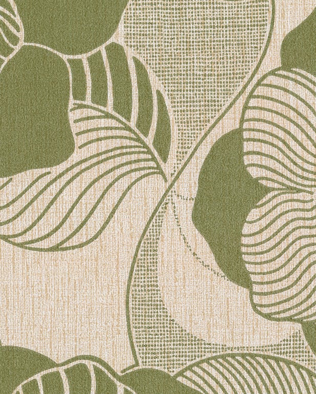 Expansiva blommor tecknade med ledig rytmkänsla och bra sväng. Notera det försiktiga bakgrundsmönstret som ger karaktär åt denna tapet från nederländska Goudsmit-Hoff, tryckt före samgåendet med Rath & Doodehever.
