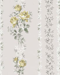 Tapetmönster som hängt med ett par sekel, med skira små buketter och band av bladverk i fin limfärg. Från svenska Kåbergs.