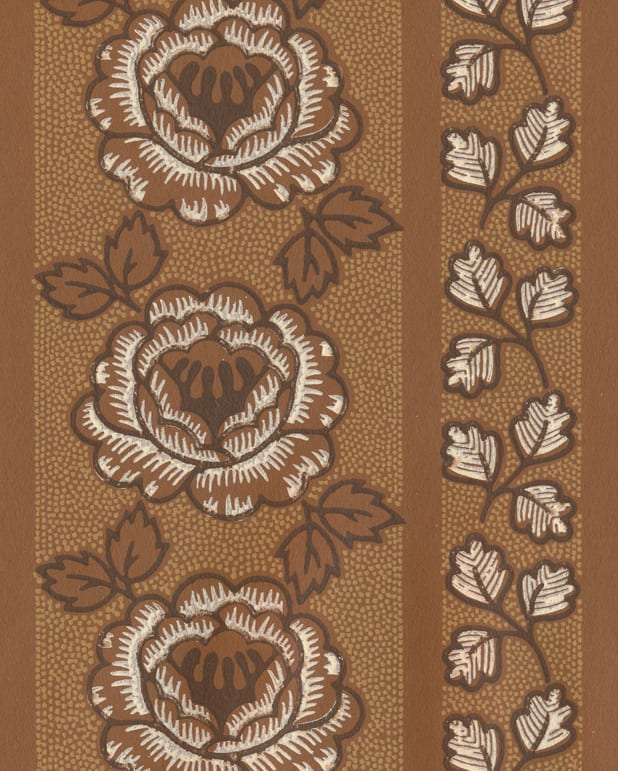 70-talsutförande av en präktig blomstertapet, sannolikt med rötter kring förra sekelskiftet. Lägg märke till det fina prickmönstret!