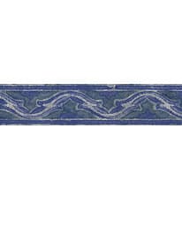 Silverbeströdd slinga med utskott, som en ringlande kvist, på dämpat grå-grön-marinblå botten. Originalbård från 20-talet. Höjd: 3 cm. Minimibeställning 5 meter.