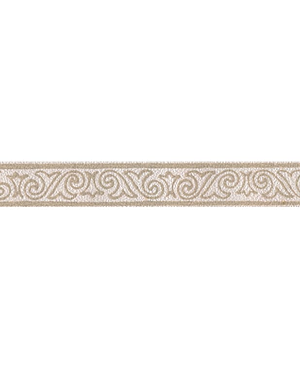 Smal skimrande bård på grynigt papper med ett band av små ornamentala figurer. Originalbård från 40-talet, eller om det möjligen är 30-tal. Höjd: 1,9 cm. Minimibeställning 5 meter.