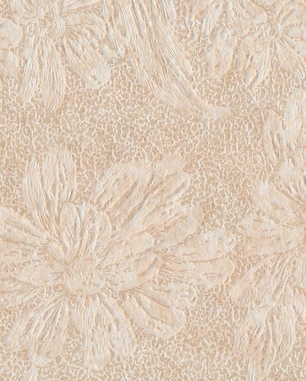 Fylliga penseldrag i blomteckningen och en ymnig asymmetrisk vegetation på en ovanlig men välfungerande putsimitation.