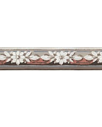 Fin blomsterbård i tidstypisk färgställning av utsökt matt kvalitet. Trycket har spruckit i smala streck på vissa partier. Originalbård från 50-talet, eller möjligen tidigare. Höjd: 3 cm. Minimibeställning 5 meter.