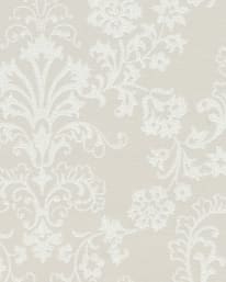 Vindlande löst sammanhållet blommönster, symmetriskt uppbyggt kring en mittaxel. Ett mönster som kan höra hemma i många tider. Försiktig och tilltalande struktur.