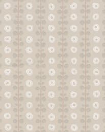 En väl avvägd lek med hård stilisering av typiska blomrankor och närmast abstrakta former ger en outslitligt 50-talsmönster på murrigt grå botten.