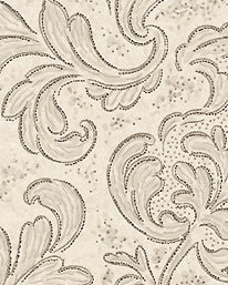 Generösa, grovt tecknade, rytmiska blad slingrande sig över pappret. Prickar i guld och svart ger tapeten både djup och lyster.