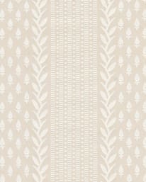 En enkel bladslinga ramar in vertikala fält i denna fromma och rätt rara 50-talstapet. Allt det vita är distinkt och fint präglat, upphöjt från bottenfärgen.