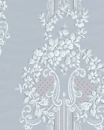 Festonger i vackert tryck hängda runt vertikala pelare. C-kurvor, rosa prickmönster och blåstick. Kvalitetstapet.