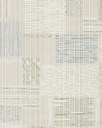 Svårt funkig tapet med asymmetriskt utplacerade fält i olika färger, allt sammanlänkat med tunna streck till ett både lekfullt och stramt kosmos. Vit pastafärg ger svag relief.