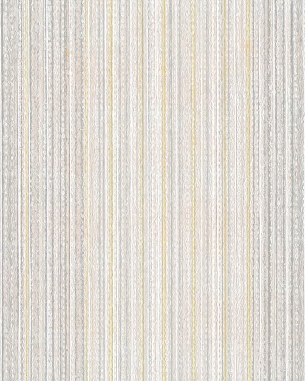 En randig tapet som inte gör så mycket väsen av sig men med subtil verkan och textil karaktär. Här finns blekt gult och blått. När man tänker efter så är den snygg! Originaltapet från 1960-talet.