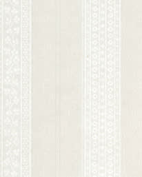 Ränder och småmönster om vartannat i denna ärtiga tapet, och lite präglat, sådär trevligt.