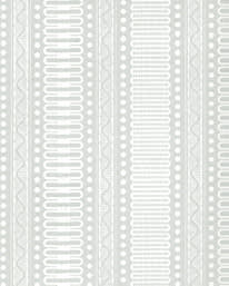 Kraftigt präglad tapet uppbyggd av vertikala mönster som meanderslingor och pärllister.