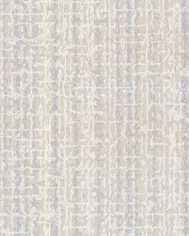 Fint tryck med olika skikt och ränder i milt blått och grönt på grovt papper. Möjligen Norrköpings tapetfabrik.