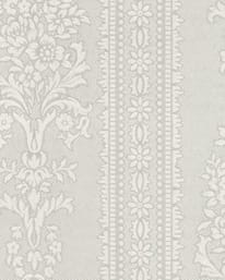 Prägling av snirkliga symmetriska blommor och intrikata randmönster ger denna tapet sin hemtrevliga karaktär. Sannolikt Göteborgs tapetfabrik.