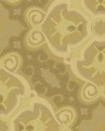 Storskaliga medaljonger i ett övergripande robust mönster av diagonalt korsande band med vibbar av medeltid.