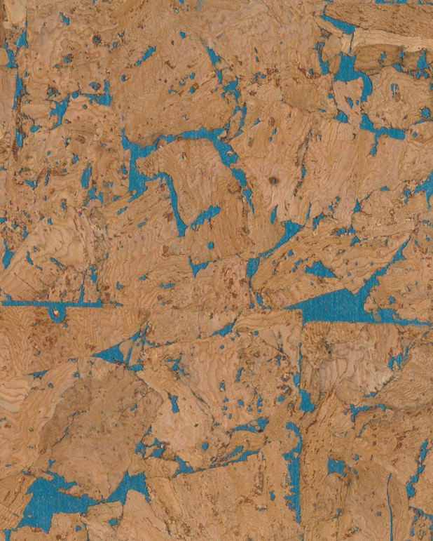 Tapetorama kom häromåret över ett mindre parti handgjord korktapet av hög kvalitet. Ytan är len och sviktande, med korkens egna mönster i oändliga variationer. Det tunna skiktet är klistrat på ett glansigt färgat papper som ger kontrastverkan där korken öppnar sig i smala rämnor eller oregelbundna former, nästan som ett sjölandskap. Originaltapet från 1970-talet.